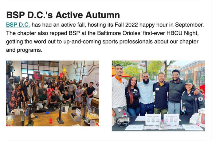 With less than 30% of minorities in high-level positions in sports, BSPDMV is bridging the gap between African-Americans who work in sports and young professionals/students who are looking to make their mark in the industry.